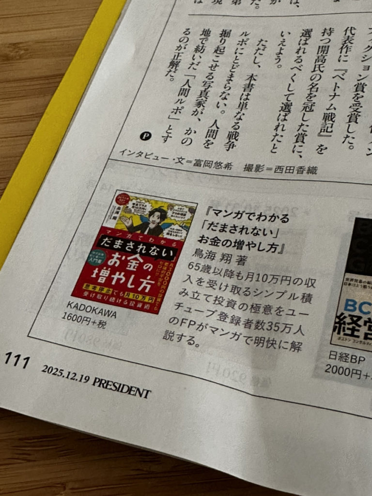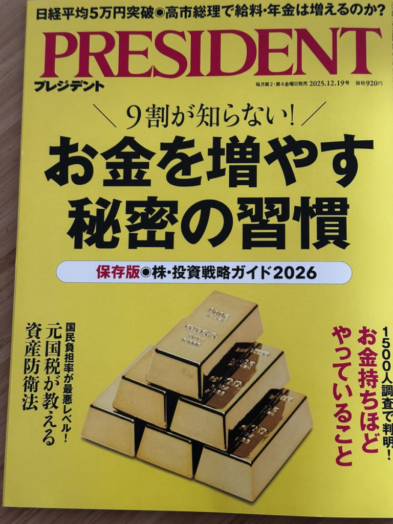 2025年12月19日発売の日本を代表する総合ビジネス誌「PRESIDENT」に、