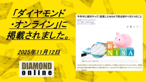 ダイヤモンド・オンラインにて今年中に絶対やって!放置したNISAで再点検すべき3つのことが掲載されました